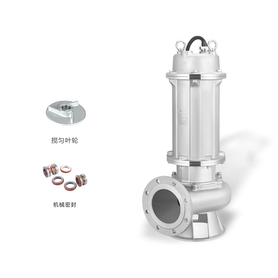 國標法蘭WQ-S全不銹鋼精密鑄造污水污物潛水電泵采用不銹鋼精密鑄造外殼,具有耐腐蝕、環保型、揚程高、流量大等特點。